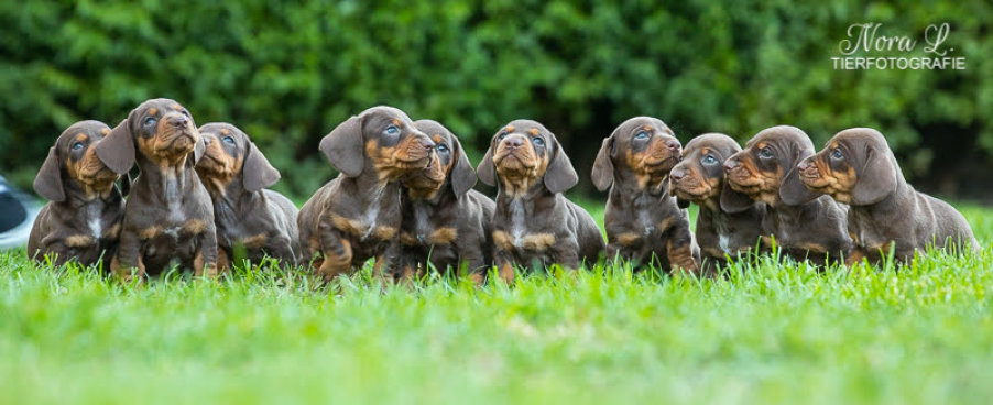 Um den 16. September 2018 erwarten wir Welpen von unserem Jettchen, Jádorecette v.d. Düsterbeck FCI. Es wird ein Wurf brauner Schokopralinen.